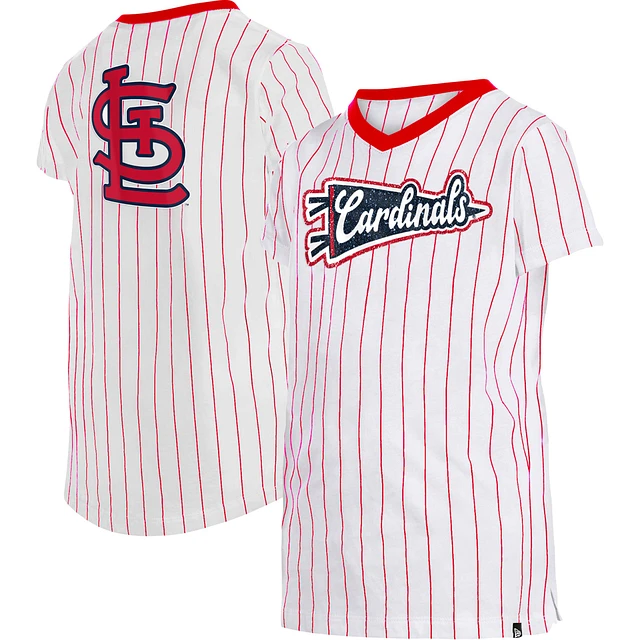Girls Youth New Era White St. Louis Cardinals Pinstripe V-Neck T-Shirt