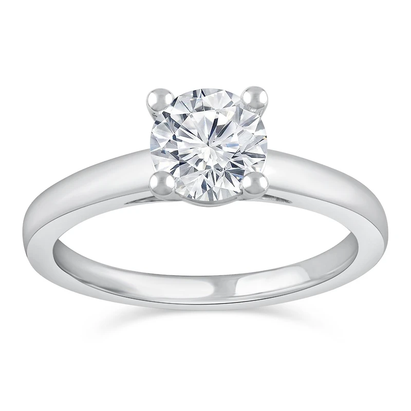 The most iconic of engagement ring styles, the solitaire symbolizes the connection and unity you share with the one you promise to love for an eternity. Featuring a round 1.00ct ideal cut Glacier Fire Canadian Diamond set into a 14k white gold band, this ring shines bright, like your love.