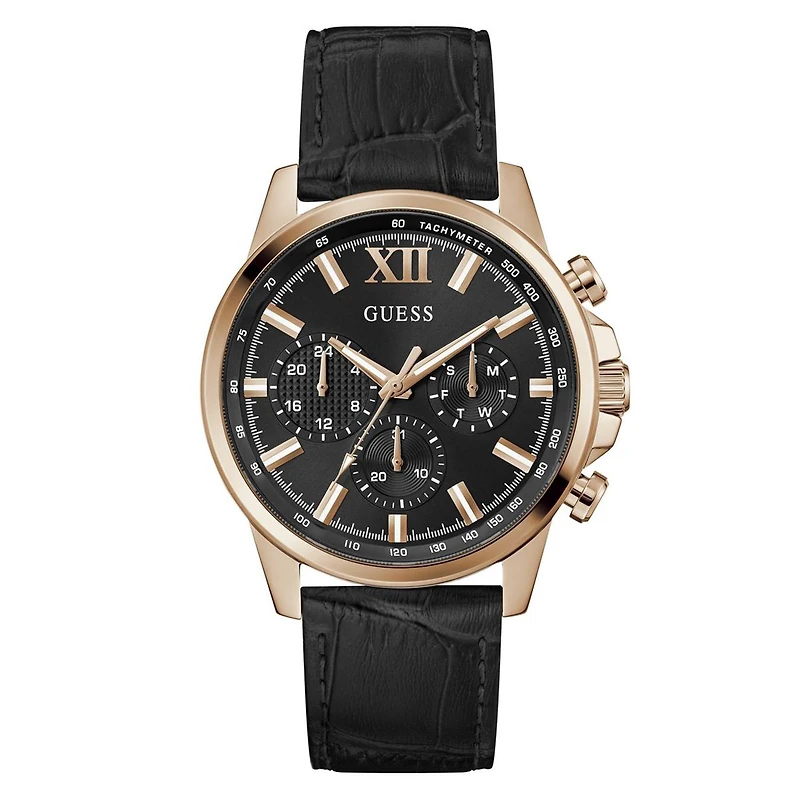 Guess Men's Rose Gold Tone Black Dial Walker Watch
