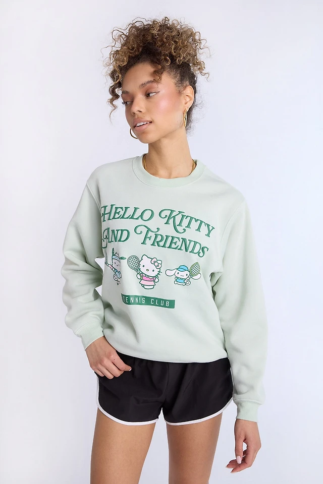 Hello Kitty And Friends Graphic Crew Neck Oversized Sweatshirt