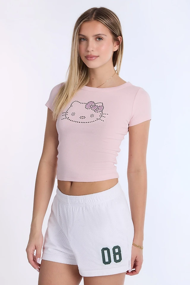 Hello Kitty Rhinestones Baby Tee - Light Pink /
