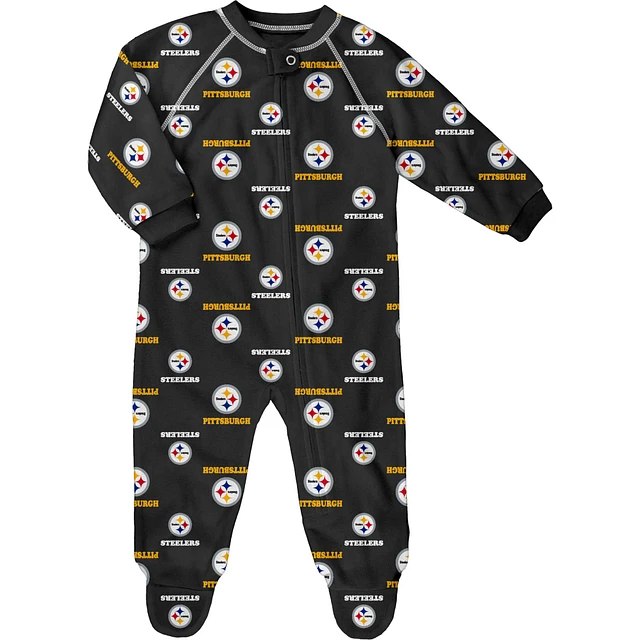 Infant Black Pittsburgh Steelers Allover Print Raglan Full-Zip Sleeper