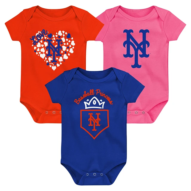 Infant Fanatics Royal/Orange/Pink New York Mets Three-Pack Home Run Bodysuit Set