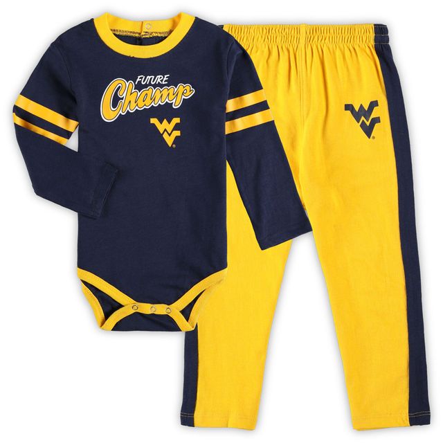 Infant Navy/Gold West Virginia Mountaineers Little Kicker Long Sleeve Bodysuit and Sweatpants Set