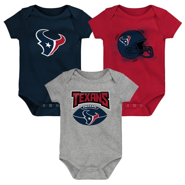 Infant Navy/Red/Heathered Gray Houston Texans 3-Pack Game On Bodysuit Set