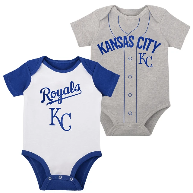 Infant White/Heather Gray Kansas City Royals Two-Pack Little Slugger Bodysuit Set