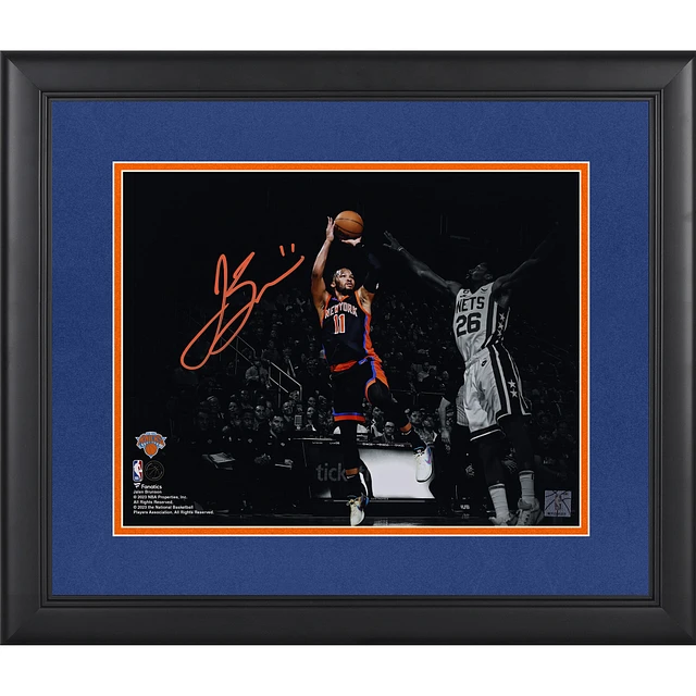 Jalen Brunson New York Knicks Autographed Framed 11" x 14" Shooting Versus Brooklyn Nets Spotlight Photograph