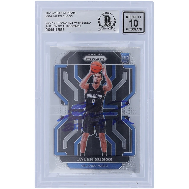 Jalen Suggs Orlando Magic Autographed 2021-22 Panini Prizm #314 Beckett Fanatics Witnessed Authenticated 10 Rookie Card