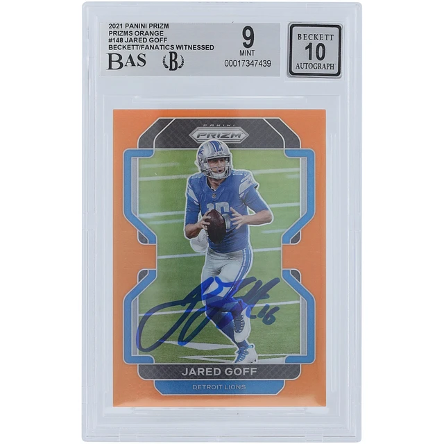 Jared Goff Detroit Lions Autographed 2021 Panini Prizm Orange #148 #/249 Beckett Fanatics Witnessed Authenticated 9/10 Card