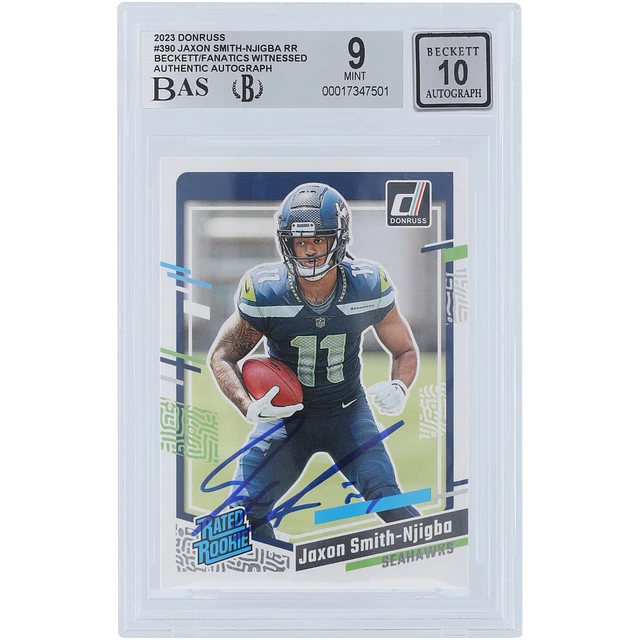 Jaxon Smith-Njigba Seattle Seahawks Autographed 2023 Panini Donruss Rated Rookie #390 Beckett Fanatics Witnessed Authenticated 9/10 Rookie Card