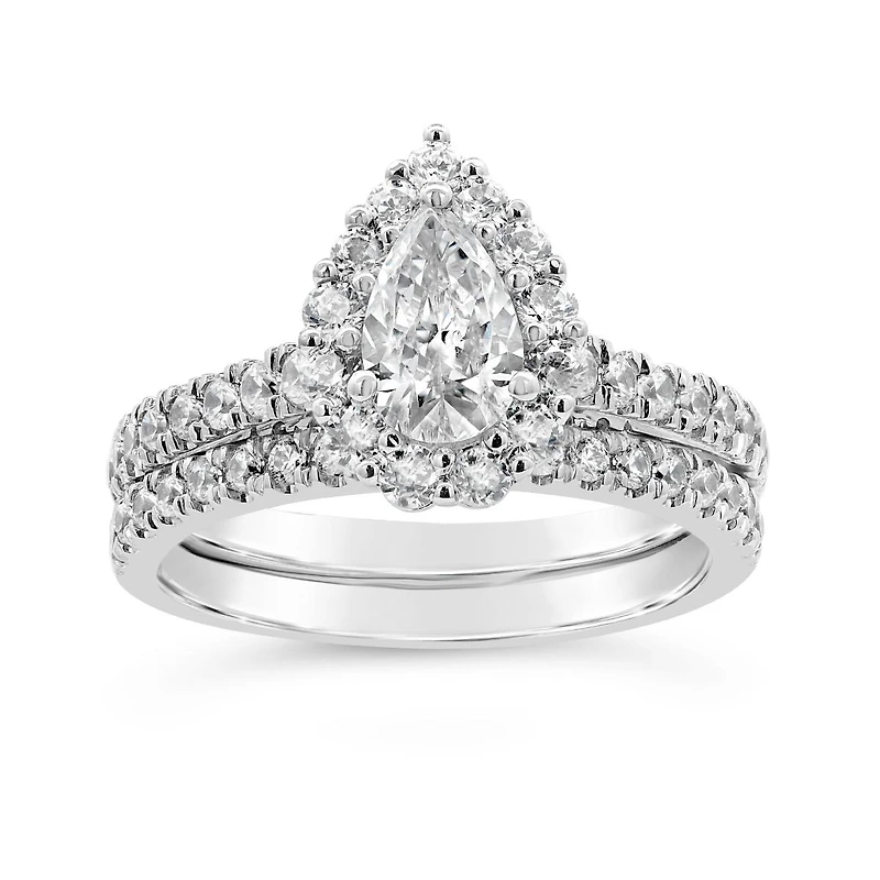 Jenny Packham 18K White Gold Lab Grown 1.75CTW Pear Shaped Diamond Bridal SetJenny Packham 18K White Gold Lab Grown 1.75CTW Pear Shaped Diamond Bridal SetJenny Packham 18K White Gold Lab Grown 1.75CTW Pear Shaped Diamond Bridal Set