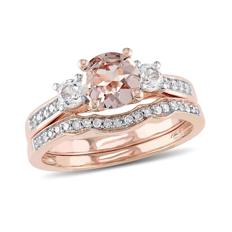 Julianna B 10K Rose Gold 0.14CTW Diamond & Morganite Bridal Set