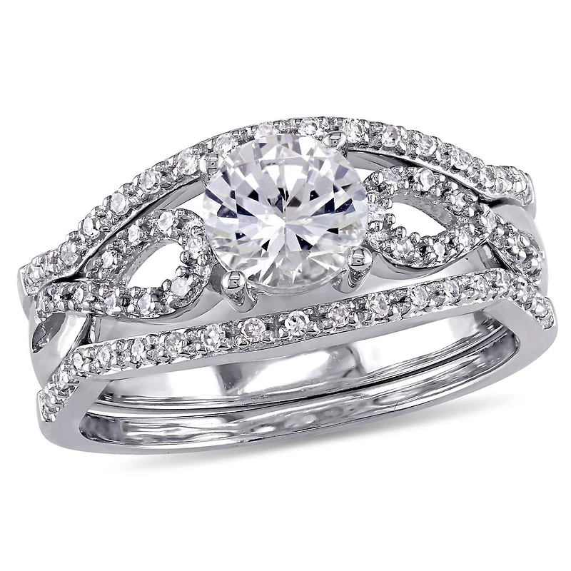 Celebrate your eternal love with this exquisite 1/4 CT TW Diamond and Created White Sapphire 3-Piece Infinity Bridal Set. Crafted in 10k white gold, the set features intricate infinity designs adorned with sparkling diamonds and created white sapphires. This elegant trio, perfect for the bride-to-be, combines timeless beauty with a modern twist, symbolizing a love that lasts forever.