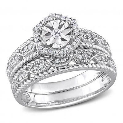 Julianna B Sterling Silver 0.24CTW Diamond Bridal Set