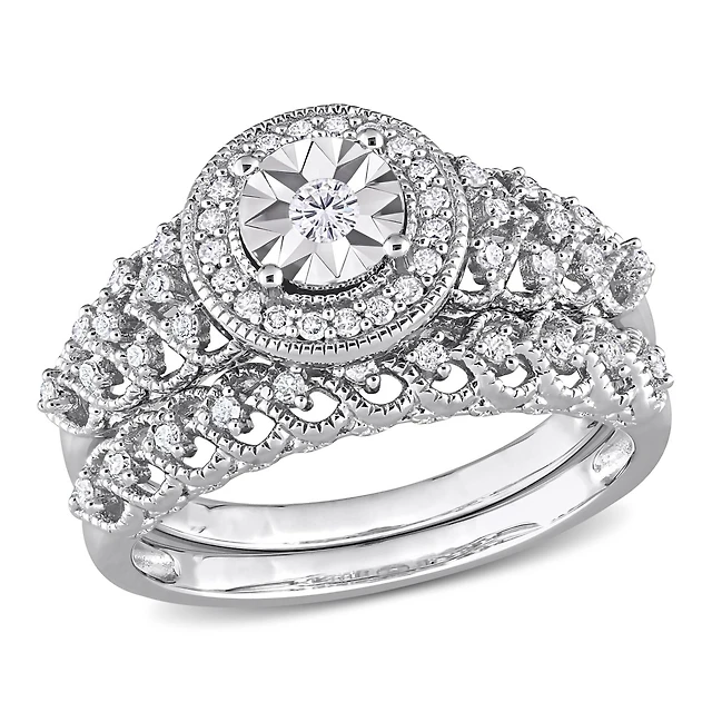 Julianna B Sterling Silver 0.20CTW Vintage Design Diamond Bridal Set