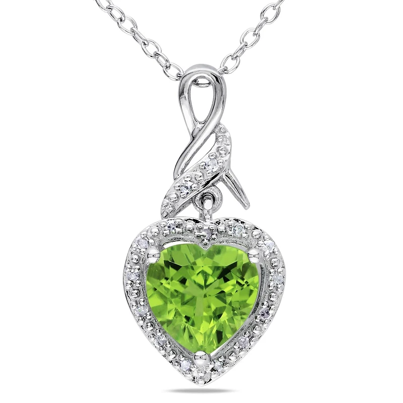 Julianna B Sterling Silver Peridot & Diamond Heart Pendant with Chain