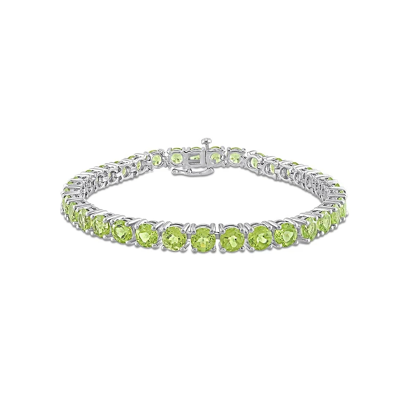 Add the colour of nature to your outfit with this captivating tennis bracelet. Crafted in shimmering sterling silver, this charming bracelet features 35 round-cut, prong-set peridot gemstones. Polished to a brilliant shine, this flawless 7.25-inches bracelet is comfortably secured with a box clasp. This enchanting bracelet is sure to give you a look that shall make you an overnight sensation in the digital world.