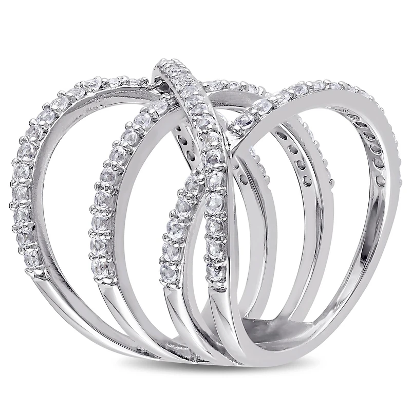 Julianna B Sterling Silver White Topaz Crossover Split Shank Ring