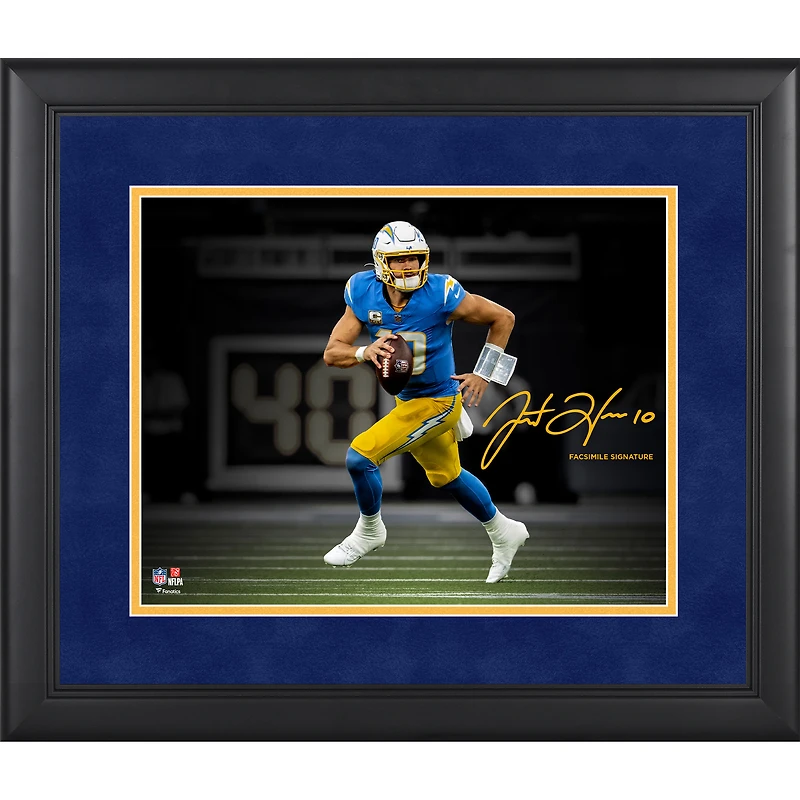 Take your collection of Los Angeles Chargers memorabilia to the next level with this Justin Herbert Facsimile Signature Framed 11" x 14" Spotlight Photograph. Whether displayed in your home or office, this ready-to-hang photo is the perfect way to highlight your passion for the Los Angeles Chargers and their star player.