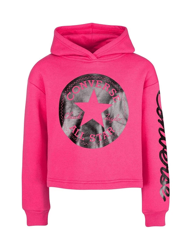 KIDS CONVERSE YOUTH GIRLS CHUCK SCRIPT SHINE CROP HOODIE