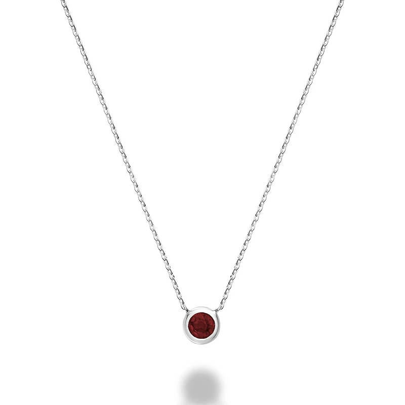 Les Bijoux 10k White Gold Bezel Set Garnet Necklace