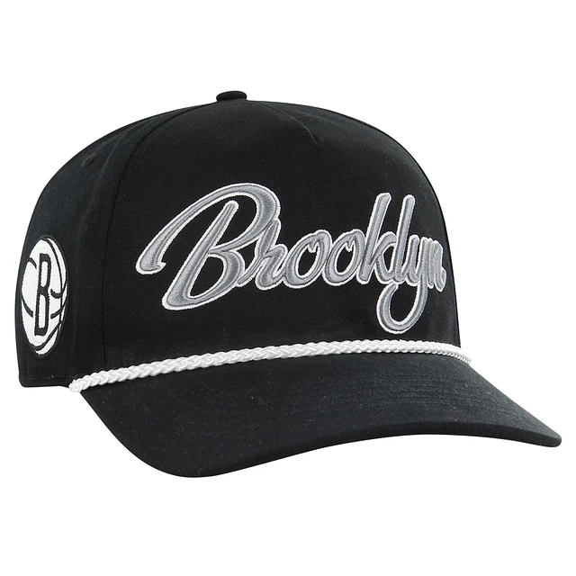Men's '47 Black Brooklyn Nets Overhand Logo Hitch Adjustable Hat