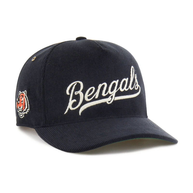Celebrate the legacy of the Cincinnati Bengals with this Golden Age Corduroy Hitch Adjustable Hat from '47. Featuring a retro-inspired silhouette with a pinched five-panel crown, this hat combines vintage charm with modern comfort. The team wordmark embroidered across the front proudly displays your Cincinnati Bengals pride, while the corduroy fabric and contrast color undervisor add unique style.