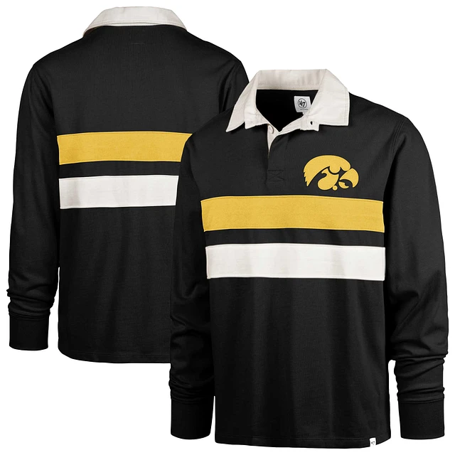 Men's '47 Black Iowa Hawkeyes Clubhouse Knox Thames Long Sleeve Rugby Polo