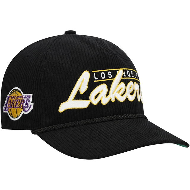 Men's '47 Black Los Angeles Lakers Double Header Sidepatch Cord Hitch Adjustable Hat