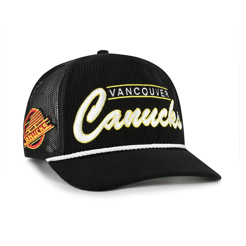 Elevate your look and show your Vancouver Canucks pride with the '47 Double Header Mesh Hitch Adjustable Hat. This premium hat features a retro-inspired silhouette with a corduroy textured front panel and visor that offers a unique and stylish look. With its mesh mid and rear eyelets, this Vancouver Canucks hat provides added breathability for all-day comfort, making it the perfect choice for any dedicated fan.
