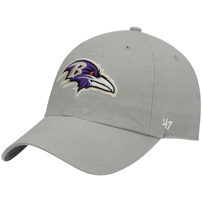 Men's '47 Gray Baltimore Ravens Clean Up Adjustable Hat