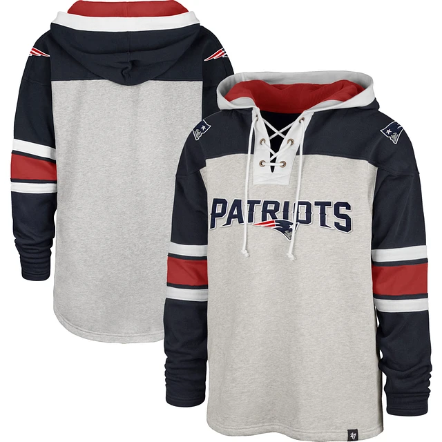 Men's '47 New England Patriots Heather Gray Gridiron Lace-Up Pullover Hoodie