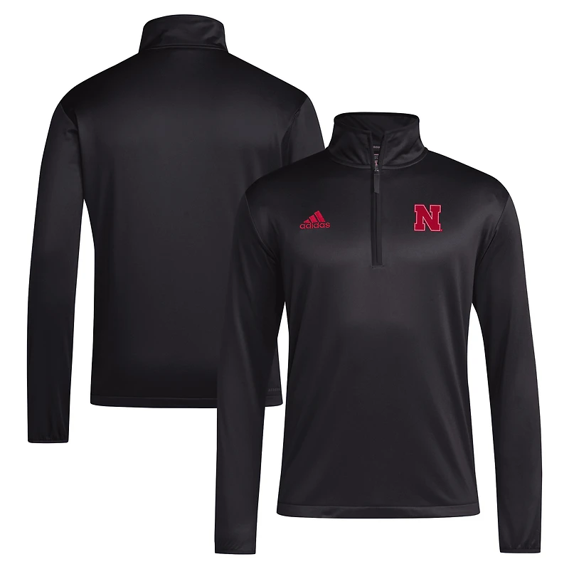 Men's adidas Black Nebraska Huskers 2024 Coaches Sideline Quarter-Zip Top