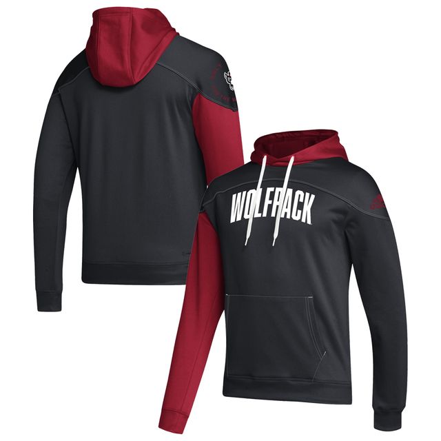 Men's adidas Black/Red NC State Wolfpack Block Stadium AEROREADY Pullover Hoodie