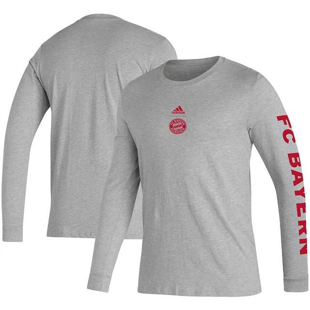 Men's adidas Heather Gray Bayern Munich Team Crest Long Sleeve T-Shirt