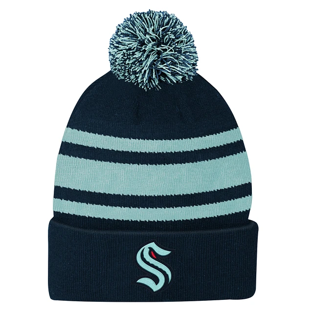Youth Deep Sea Blue Seattle Kraken Stretchark Cuffed Knit Hat with Pom