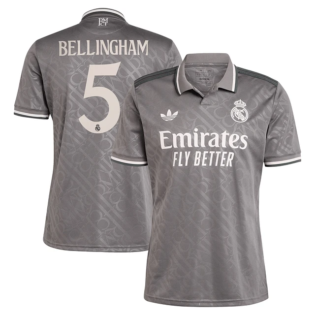 Men's adidas Originals Jude Bellingham Charcoal Real Madrid 2024/25 Third Replica Player Jersey