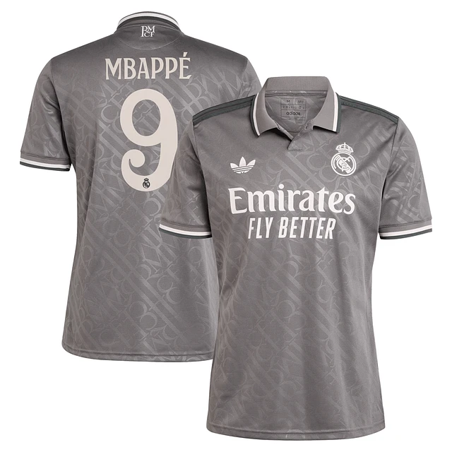 Men's adidas Originals Kylian Mbappé Charcoal Real Madrid 2024/25 Third Replica Player Jersey
