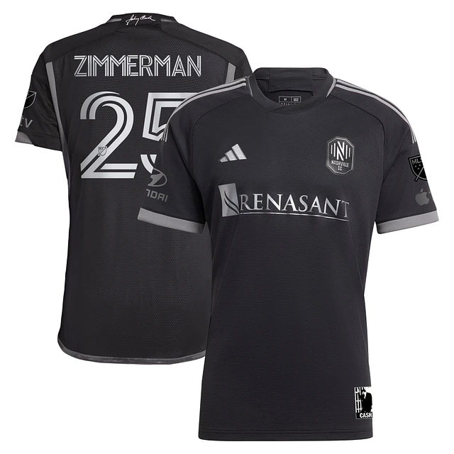 Men's adidas Walker Zimmerman Black Nashville SC 2023 Man Kit Authentic Player Jersey