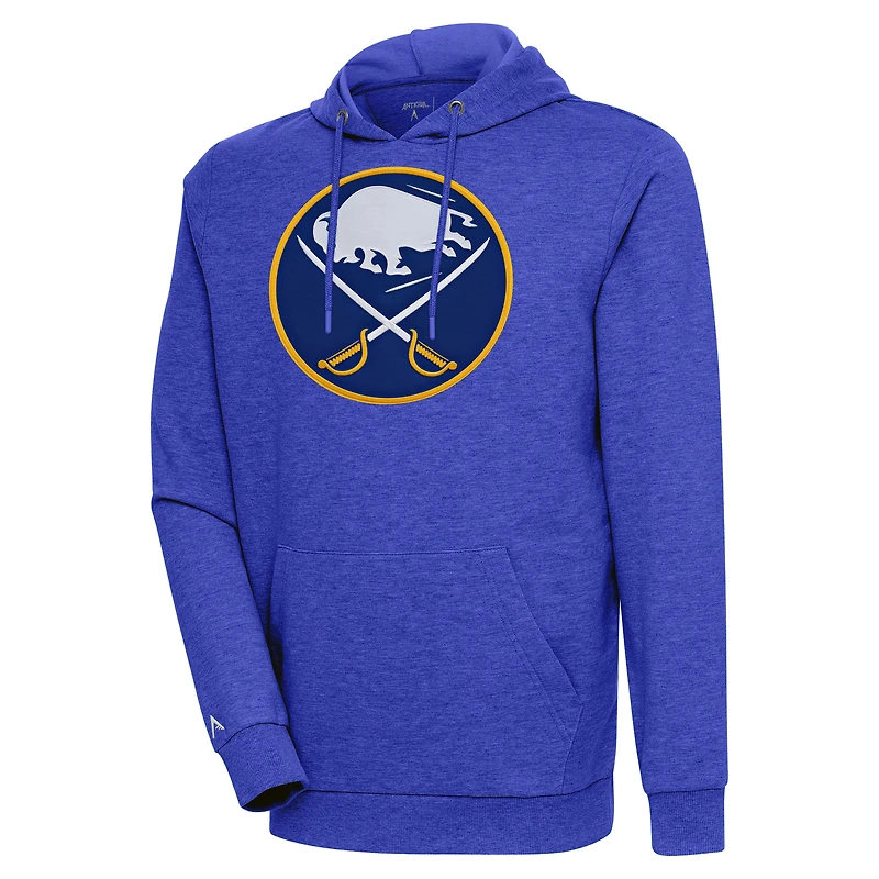Men's Antigua Heather Royal Buffalo Sabres Logo Action Chenille Pullover Hoodie