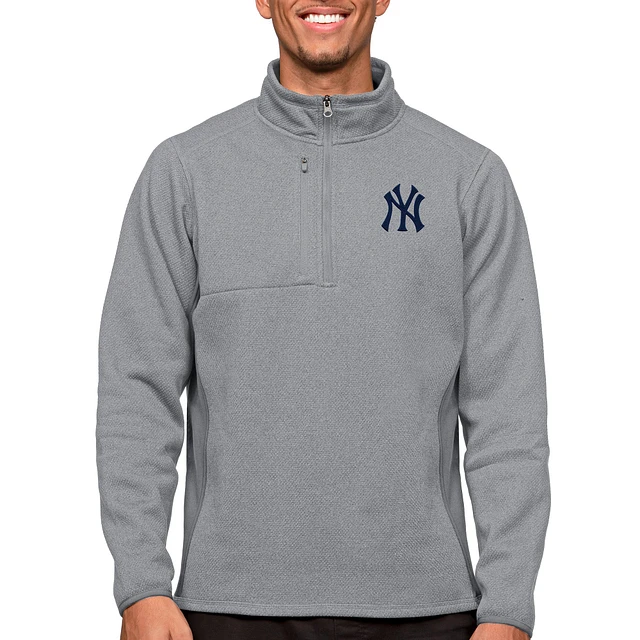 Men's Antigua Heathered Gray New York Yankees Course Quarter-Zip Pullover Top