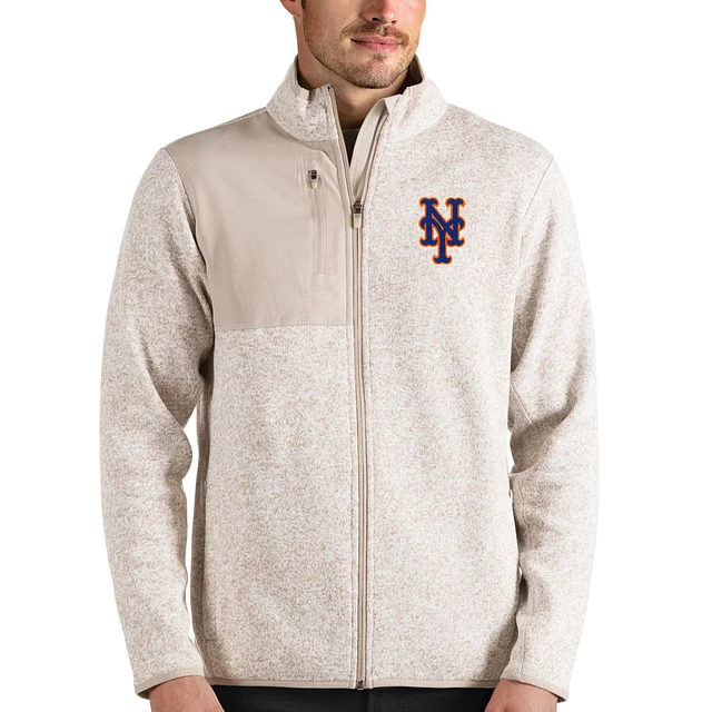 Men's Antigua Oatmeal New York Mets Fortune Full-Zip Jacket