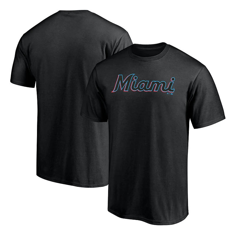 Men's Black Miami Marlins Official Wordmark T-Shirt