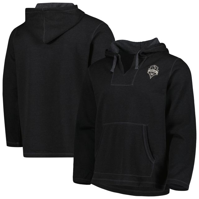 Men's Black Seattle Sounders FC Baja Fleece V-Neck Pullover Hoodie