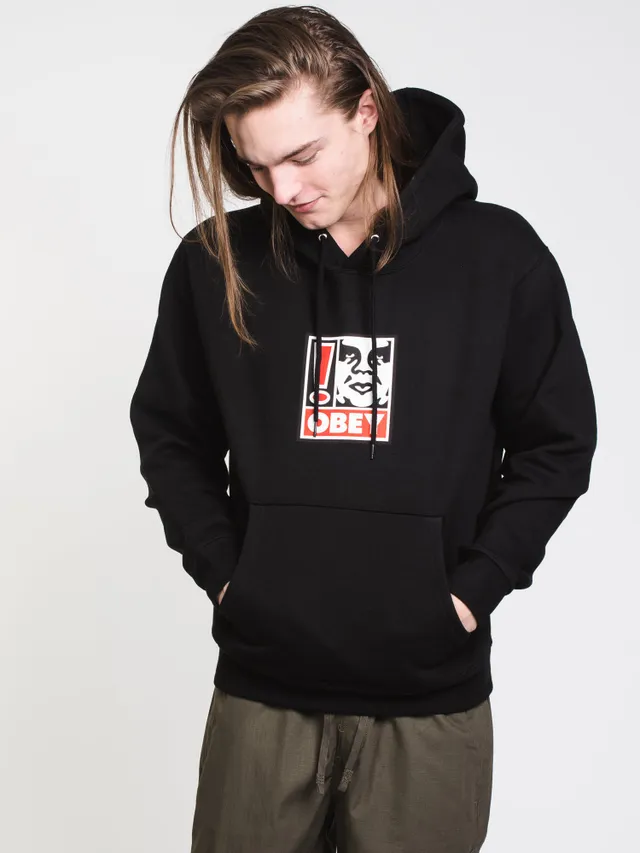 MENS BOX EXCLAMATION PULLOVER HOODIE - BLACK CLEARANCE