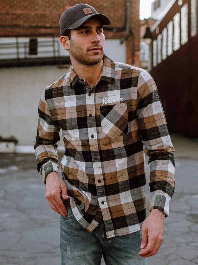 MENS CADEN LONG SLEEVE PLAID - PRIMER WHITE CLEARANCE