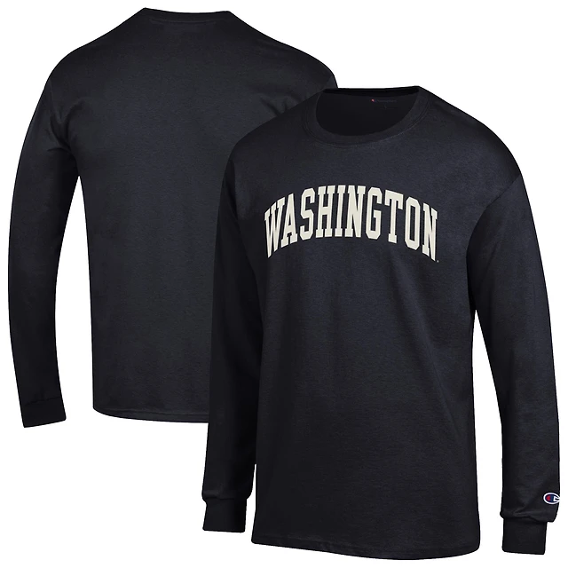 Men's Champion Black Washington Huskies Basic Arch Long Sleeve T-Shirt