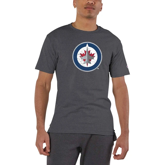 Men's Champion Charcoal Winnipeg Jets Distressed Jersey T-Shirt