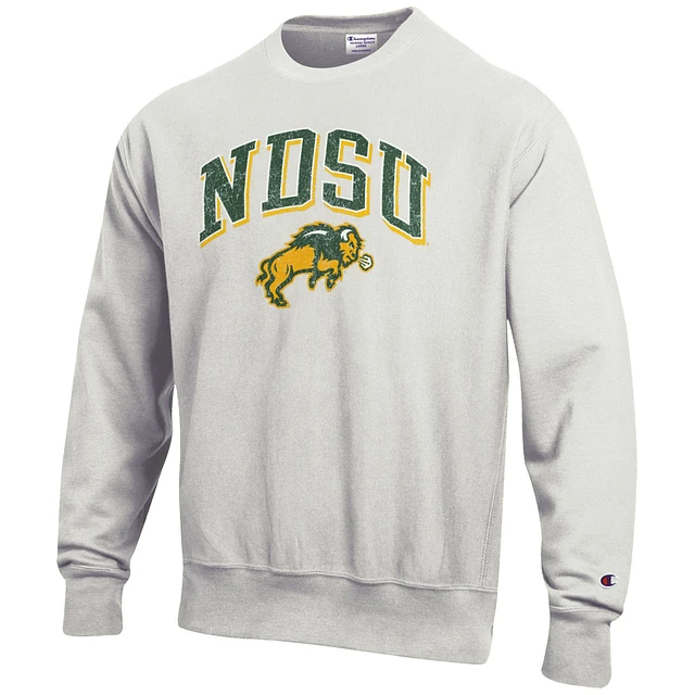 Men's Champion Gray NDSU Bison Arch Over Logo Reverse Weave Pullover Sweatshirt