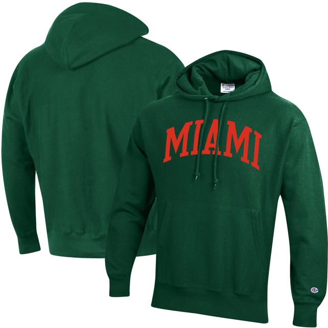 Men's Champion Green Miami Hurricanes Team Arch Reverse Weave Pullover Hoodie
